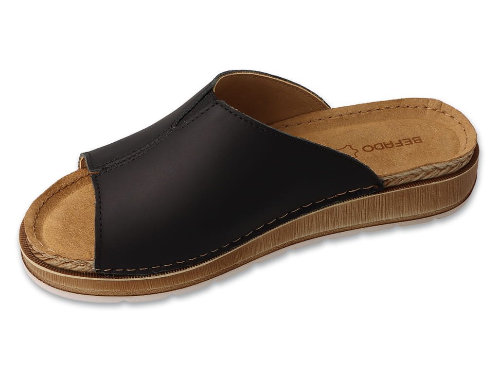 Typ topánky: Šľapky Stielka: 100% pravá koža Farba: Čierna Veľkostná skupina: Dospelí Farba podrážky: Biela Pohlavie: Dámske Vnútorný materiál (podšívka): Koža Vonkajší materiál: Pravá koža