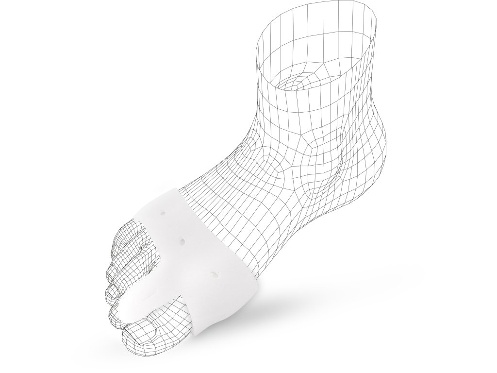 Gélový návlek s anatomickým prispôsobením tvaru chodidla, kombinovaný s medziprstovým korektorom. Určený pre ľudí s chorobami hallux valgus. Korektor oddeľuje deformované a prekrývajúce sa prsty chodidla, zmierňuje bolesť halluxu. Návlek chráni kĺb palca pred odieraním obuvou a chráni hlavy metatarzálnych kostí. Veľkosť univerzálna.