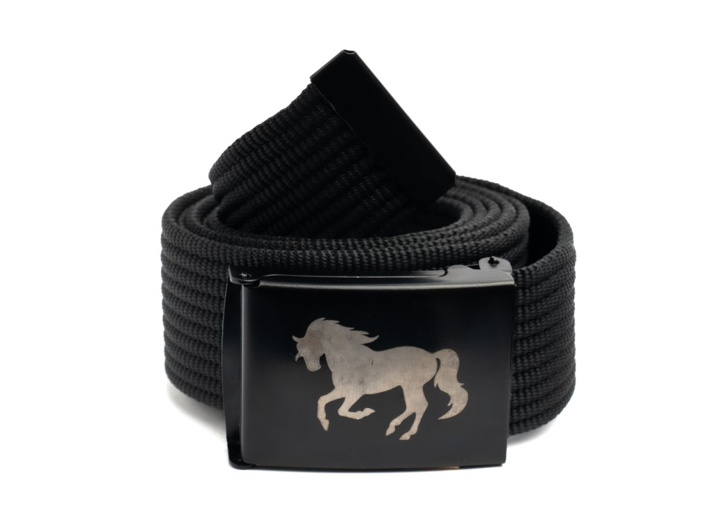 Opasok OUTDOOR čierny 40 mm + gravír kôň